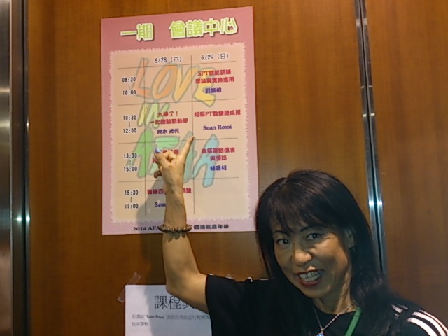 フィットネス, ワークショップ まずは!DAY2台湾 2014年6月28日 鈴木 光代 さ〜て…いよいよコンベンションが始まりますドキドキ… まずは下見キネシオロジー会場緊張〜(;^ω^) ここに私担当のプログラムが〜 アクアはここです オープニングセレモニーこんなにも会場にはたくさんの方が…