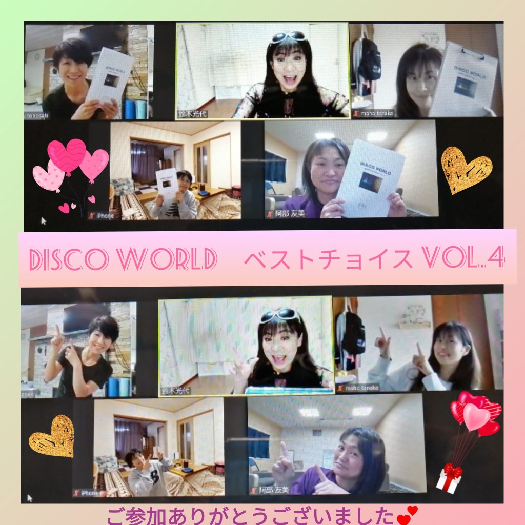DISCO, フィットネス, ワークショップ 【DISCO WORLD BC4】 2023年2月12日 鈴木 光代 ❝ディスコワールド❞バックナンバーの人気シリーズご参加ありがとうございました💗北海道、愛媛、山口とオンラインならではです✨和気あいあいパワー全開でしたね。◕‿◕。