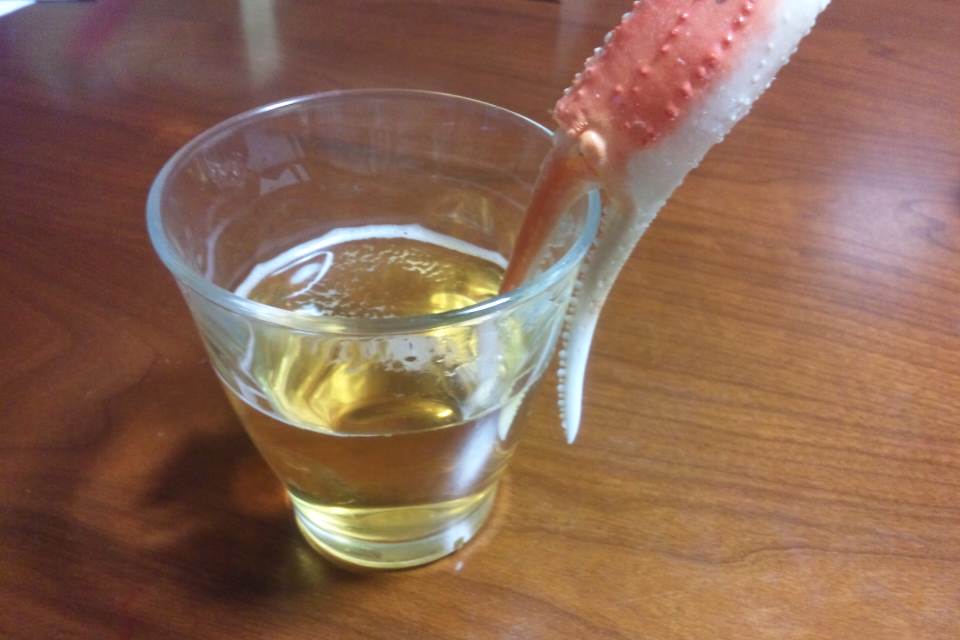 グラスに何が挟まってるのかとおもいきや、かにさんですかぁぎゃっは〜ウケる