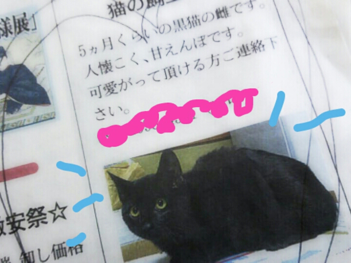 新聞の「 猫の飼い主さん募集」欄を
