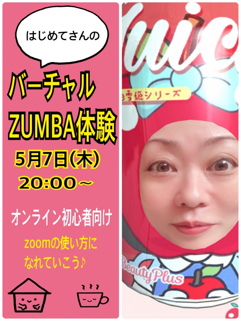 翌、5月8日(金)も20:00〜 バーチャルZUMBA予定しています。体験版は今回のみとなりますのでご了承下さい。