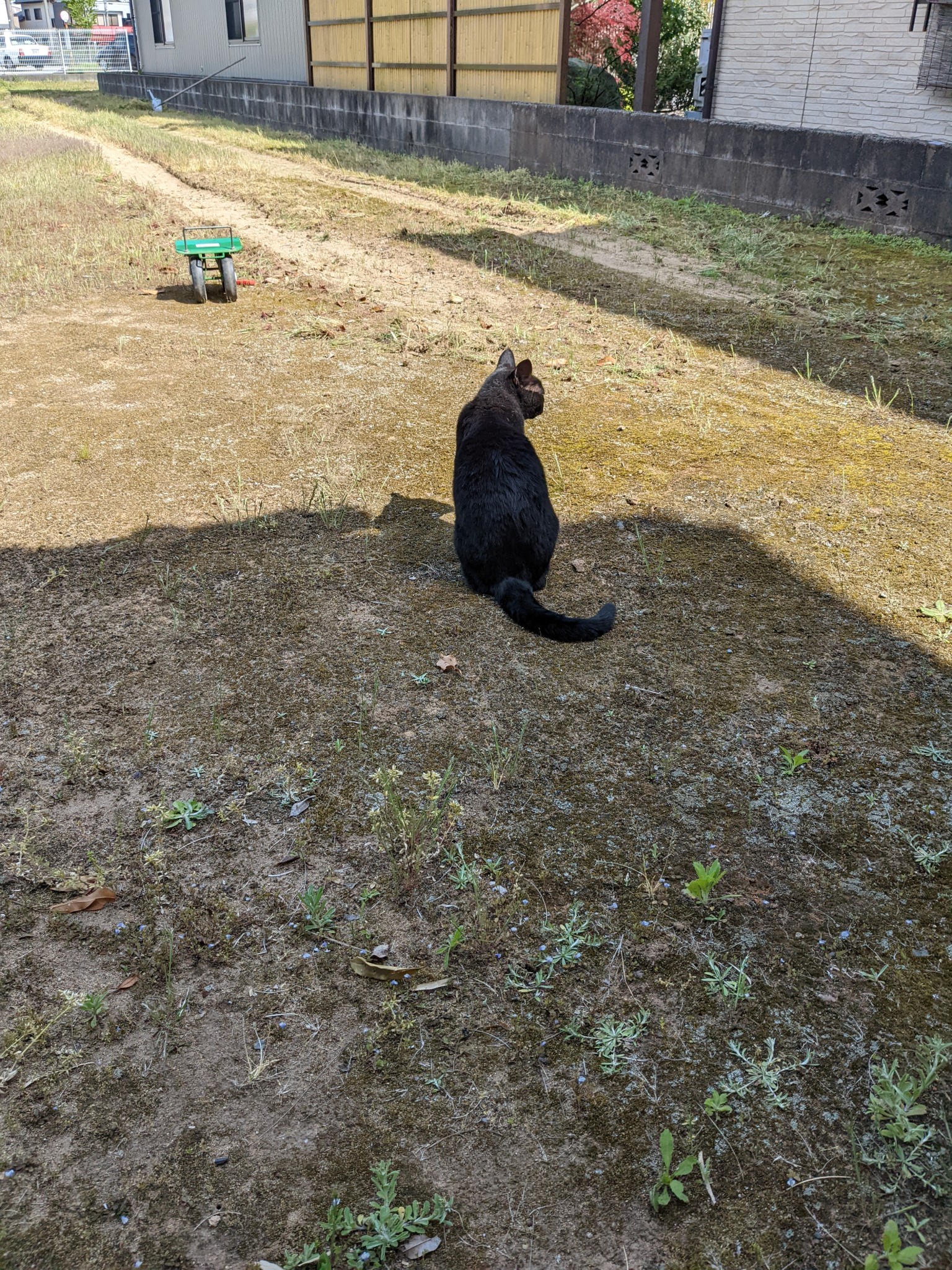 緑に黒のコントラストいいね👍てか 手伝え、ひやかし猫。