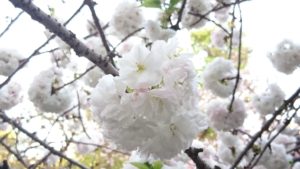 密生して咲いて手毬のように丸かったり(大手毬もあれば小手毬もあるし)、枝垂れ桜だったり、一重桜もあれば八重桜もあるし、八重にも花弁が10枚のものから多いものは200枚になる種類もあったり、1つの花の大きさも大から小まで様々だし、色も薄紅色・薄紫色・薄紅白色・薄黄緑色・濃紅色・黄緑色・白色・濃紅紫色等々・・・