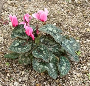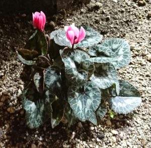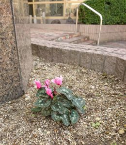 マンションの入り口の階段の近くに、いつからか小さなシクラメンが一株だけ植えられています。