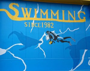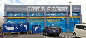 まずは、某スイミング施設の建物の側面の壁の絵です。