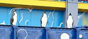 そして、大きい方のコンテナの屋根には、ペンギンの置物が3羽、ちょこんと乗っています(^o^)