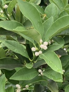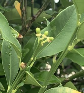こんな白い蕾をつけていたキンカンの木に実った、キンカンの赤ちゃん👶