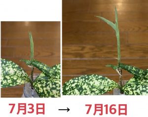 伸びたところが2つに分かれて、片方が新しい葉っぱになってきました。