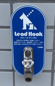 ワンちゃんのお散歩のついでにも寄れるようにと、リードフック。