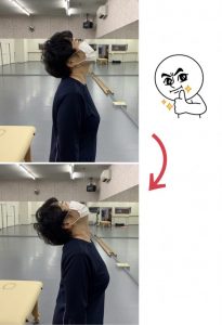 理想とする『おでこと顎を結んだラインが、床に対して並行』までには、なかなか遠いところ・・