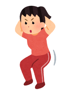 正しいフォームでしゃがんでいくと、しゃがむ角度が深くなるにつれて、膝が出ないとしゃがめないです。