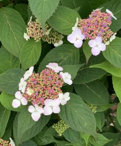 そろそろ咲きそう・・と思っていたガクアジサイがついに開花。