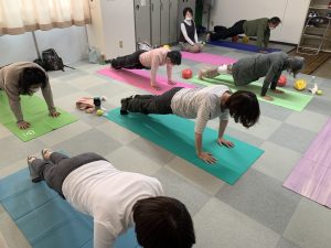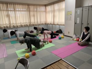 今日は、他にもお仕事の都合で1ヶ月ぶりという方もいらっしゃったので、ゆったりとJSAスモールボールエクササイズを中心に組み立て、お一人お一人にハンズオン。