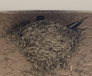 広い道沿いに立つマンションに作られた、毎年何組かのツバメのカップルさんが子育てに使っているツバメの巣。