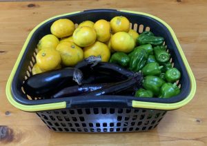 ウエルネススタジオの仲間が、採りたてお野菜と早生のみかんを、こんなにたくさん持ってきてくださいました😃