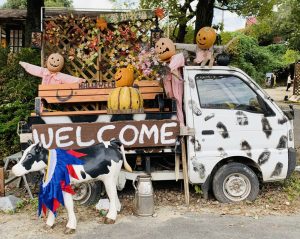 牧場内のあちらこちらにフォトスポットがあって、今はハロウィン仕様。