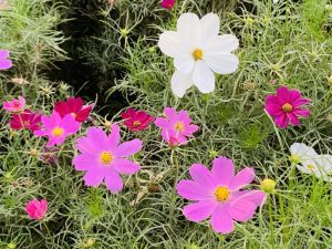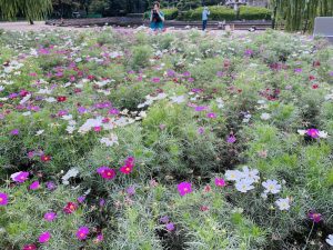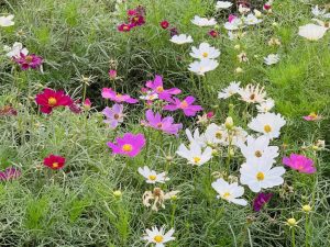 コスモス畑というほどの広さではなかったけれど、一角に植えられたコスモスが咲いていて、楽しむことができました。