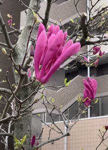 さて、今日レッスンに行く途中、モクレンのお花が咲いていました。