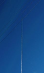 これは、12月に撮った飛行機雲なんだけれど。こんな風に青空に真っ直ぐ伸びる飛行機雲、嫌いな人はいない気がします。