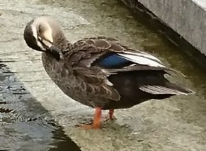 あっ、顔は足(水かき)が届くのね。