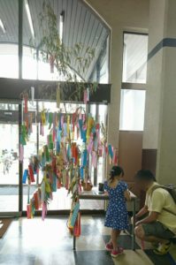 こちらもまた別のスポーツクラブに置かれた七夕飾り。ここもまたスイミングに来ている子供達が飾りました。