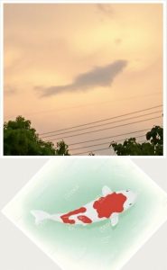 この前、紅白の金魚をたくさん見たせいか、錦鯉の姿が目に浮かびます😃