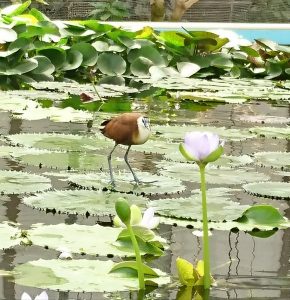 昨日、ハスの葉の上を歩いていた鳥🐦