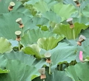 今回は蓮池に寄ってみました。ほとんどが咲き終わり、蜂の巣みたいなのがたくさん。