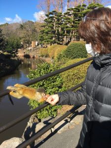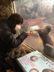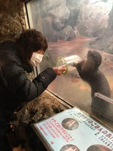 リスザルにもエサやり。でも、すぐに取られちゃうんですよね。