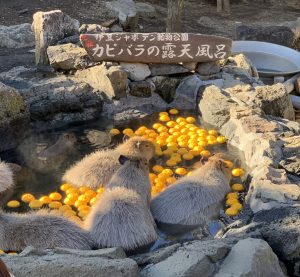 伊豆シャボテン公園と言えば・・カピバラの露天風呂の発祥の地。今年も「元祖!カピバラの露天風呂」というイベントが始まっていました。