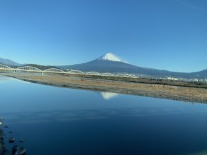 大好きな富士山は、川面に頭だけ逆さ富士🗻