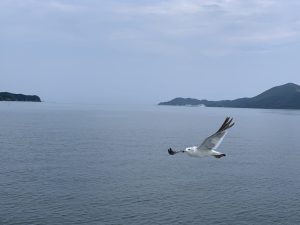 鳥羽湾めぐりの最中は、船の中で販売している「かもめのエサ」を買って、飛んでくるかもめにエサをあげることができるのです。