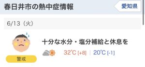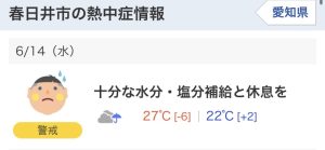さらに、春日井市では、昨日も今日も「熱中症に警戒」の情報が届きました。