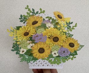 今年も、ひまわり入りアレンジメントフラワーの立体ポストカードでした。