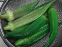 でも、よく見ると、普通の緑のオクラよりも淡く、かすかに紫がかっているのがわかります(上の2本)