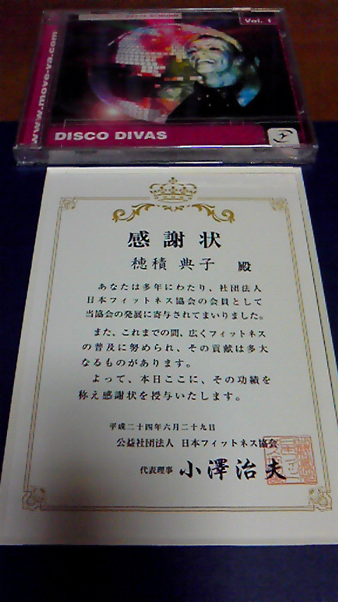中には、会員継続15年の感謝状と、エクササイズ用のCDが入っていました![]()