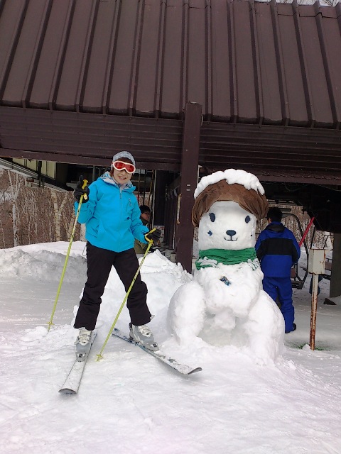 こちらは、昨シーズン誕生した志賀高原のご当地キャラクター、おこみんの雪だるまと![]()