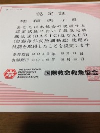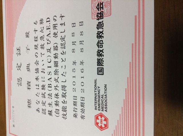 各種の運動指導関連資格取得の際には、CPRのライセンス取得を絶対必須条件にするのは当然ですが、資格更新の際にも、有効な(期限切れでない)CPRの認定証の提出を、絶対必須条件にしてください