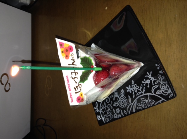 いただいたケーキは、安全運転で持ち帰り、家で一人HAPPY BIRTHDAY![]()