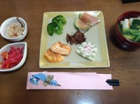 元旦の朝は、いつものパンとサラダの朝食ではなく、お雑煮と簡単なおせち風ワンプレート