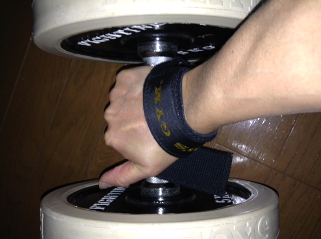 ところが、扱う重量が上がるにつれて片手でダンベルを持つことが難しくなり、10kg以上のダンベルはほとんどストラップを使用して扱うようになりました