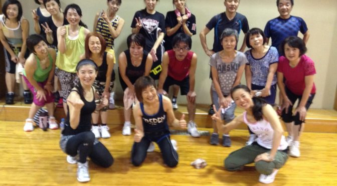 今回は午後からしか会場を借りることができなかったので、60分の初級エアロと、90分の中上級ジョイントレッスンの二本でしたが、のべ40名を超える方々が参加してくださいました