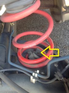 これらをまとめて、サスペンションと言いますが、その一部である樹脂部分(矢印で示したところ)が、前後ともに裂けたり変形していました