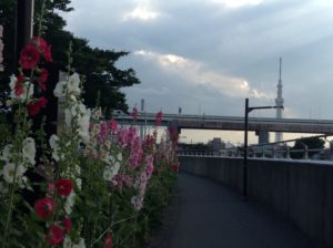 日が傾きかけた時間だったので、ちょっと逆光気味なのですが、向こう岸にはスカイツリーが見えました