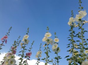 梅雨、6月の花と言えば、紫陽花を思い浮かべる方が多いと思いますが、梅雨の雨に似合うのが紫陽花なら、梅雨の合間の青空に映えるのが、このタチアオイだと思います