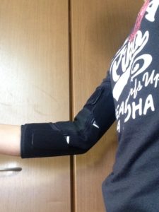 その日まではほとんど日中は半袖でOKだったので、この装具も腕に直接つけることができましたが、翌日から気温が急降下