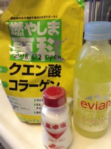今日は代行で45分のエアロ1本だけだったので、350mℓのミネラルウオーターに、いつも通りの分量のクエン酸パウダーを溶かし、そこにほんのひとつまみの塩を加えました