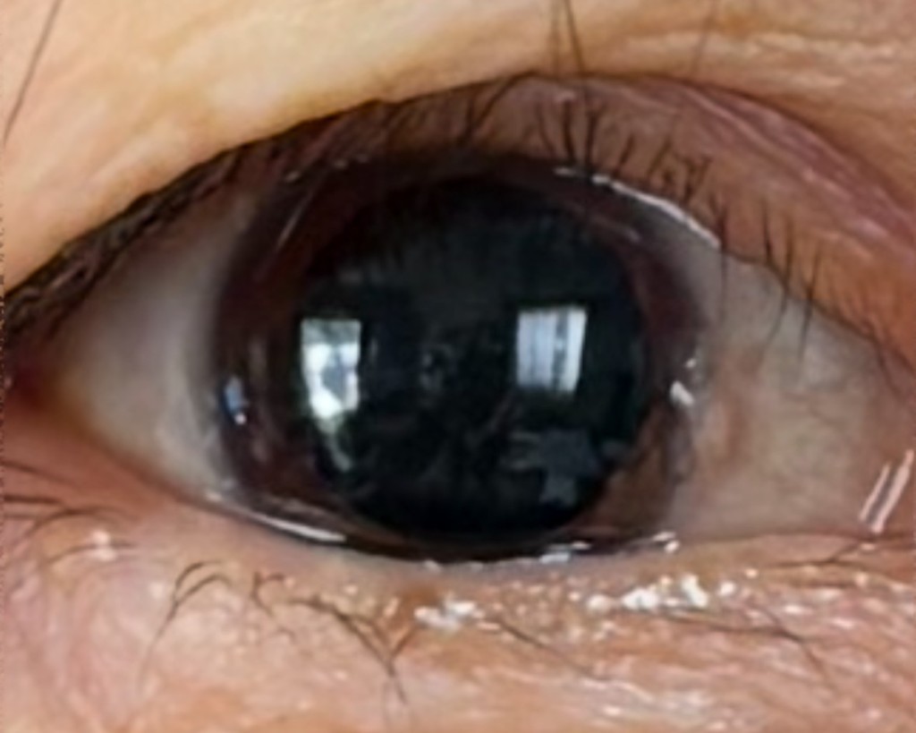 一回目の投与後、しばらくしてから鏡を見ると、右目の黒目が左に比べて少し大きくなっています