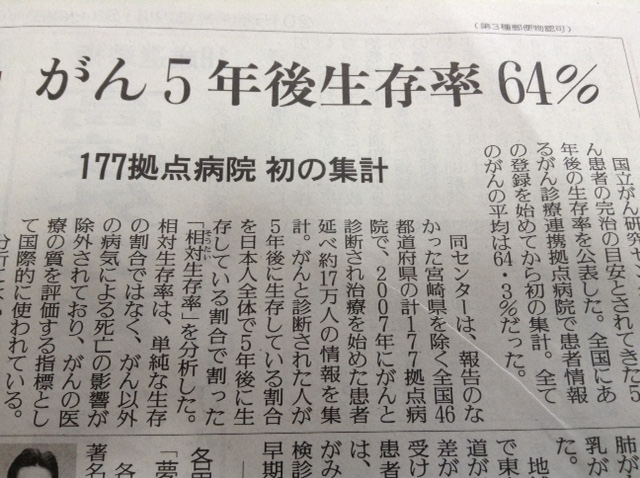 ガンと診断されて、すべてをあきらめてしまうには、あまりにももったいない数値です