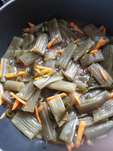 塩出ししたふきを煮ます。